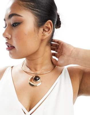 Gargantilla dorada rígida con colgante de ojo de tigre de edición limitada de ASOS DESIGN Curve
