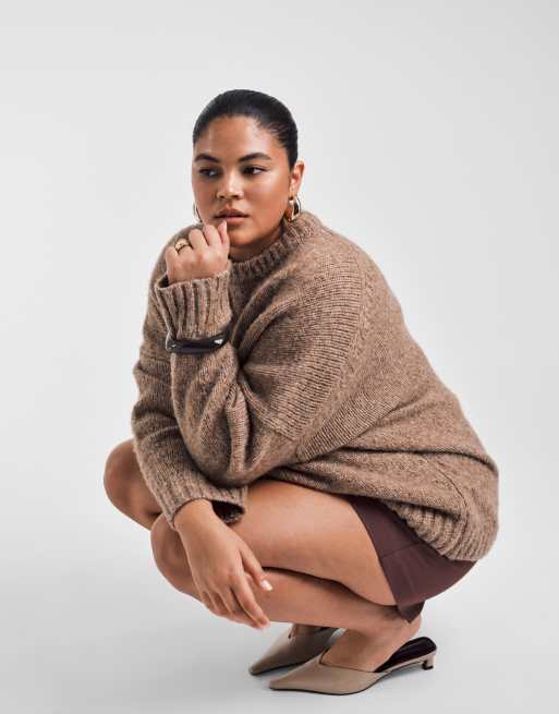 Jersey beis oscuro extragrande con cuello redondo y bajo redondeado de ASOS DESIGN Curve