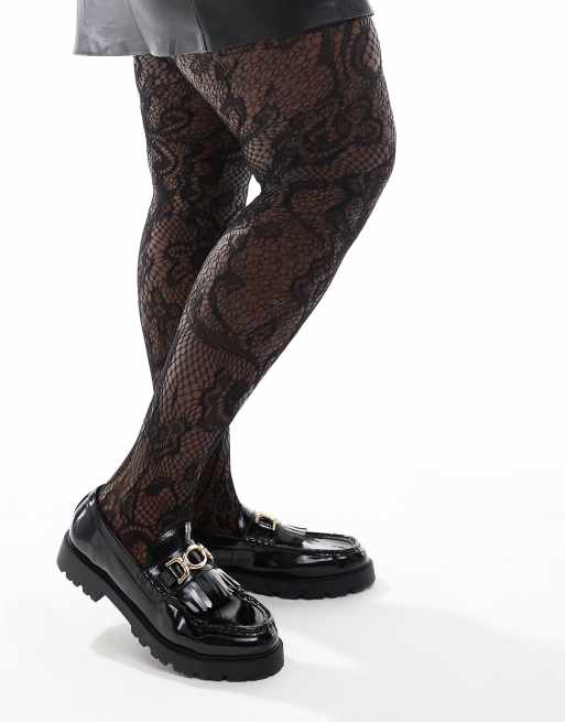 Medias negras con diseño floral de rejilla de ASOS DESIGN Curve