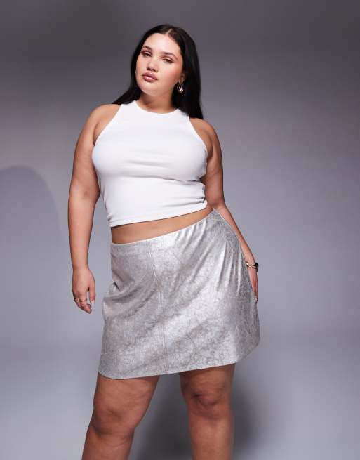 Minifalda de cuero sintético metalizado de ASOS DESIGN Curve