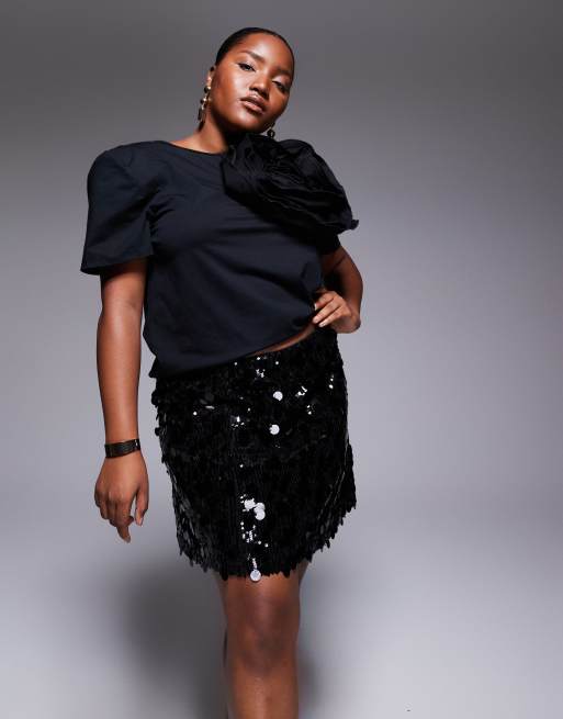 Minifalda negra de lentejuelas variadas de ASOS DESIGN Curve