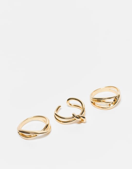 Pack de 3 anillos dorados chapados en oro de 14 quilates de ASOS DESIGN Curve