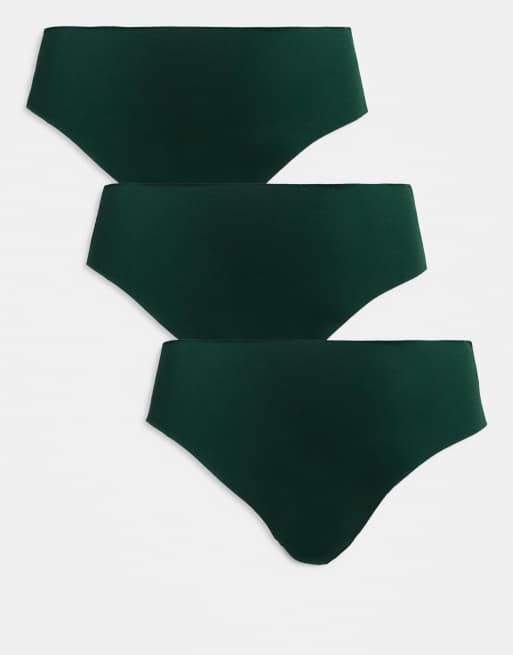 Pack de 3 braguitas brasileñas verde bosque de tejido efecto invisible y encaje de ASOS DESIGN Curve