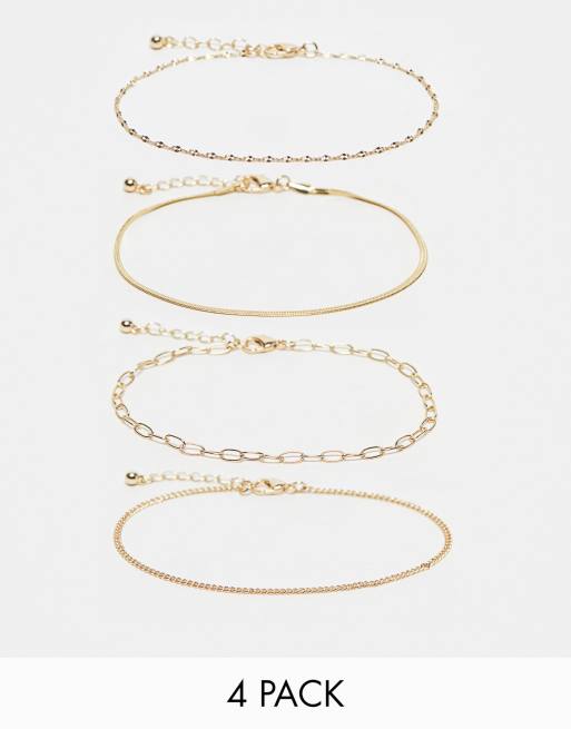 Pack de 4 tobilleras doradas con diseño de cadena de ASOS DESIGN Curve