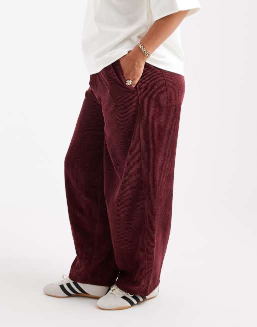 Pantalones burdeos de pernera barrel sin cierres de pana de ASOS DESIGN Curve
