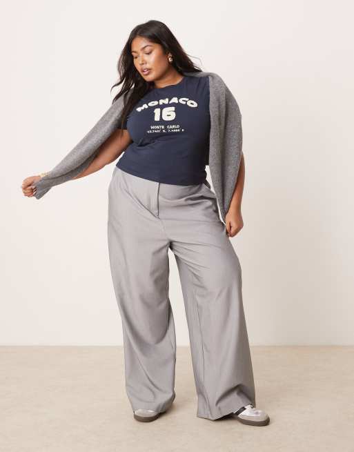 Pantalones de sastre grises de pernera recta holgada de ASOS DESIGN Curve