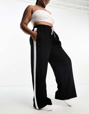 Pantalones negros sin cierres con panel en contraste de ASOS DESIGN Curve