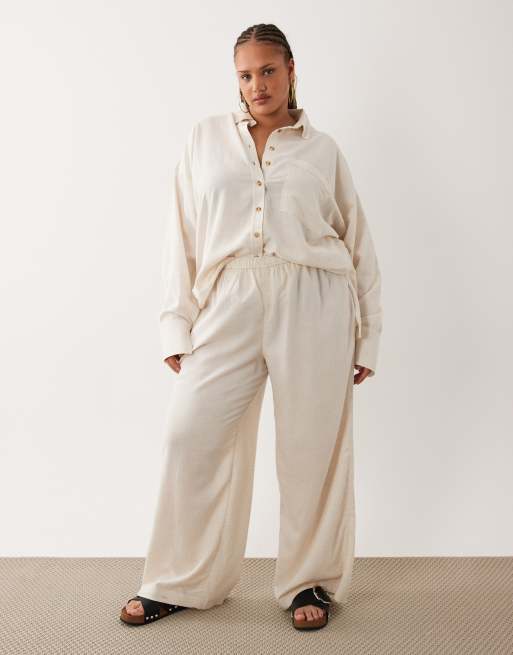 Pantalones playeros beis de pernera ancha de tejido transparente con lino Ipanema de ASOS DESIGN Curve