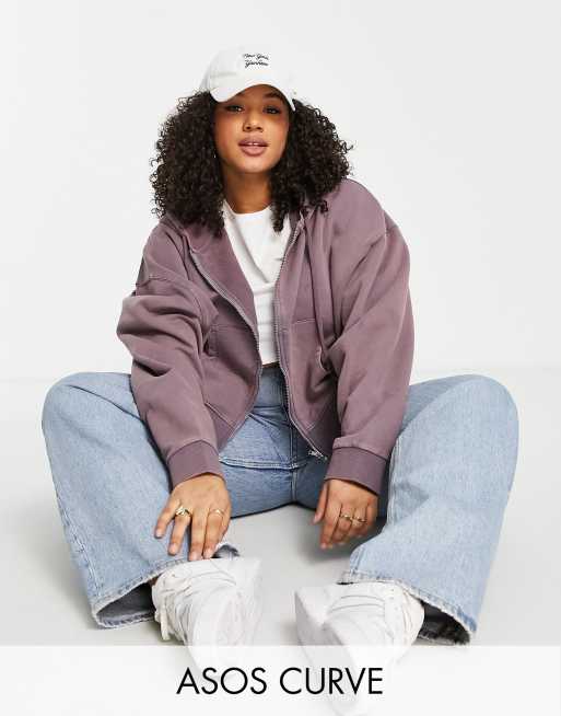 Sudadera extragrande con capucha, cremallera y lavado violeta de ASOS DESIGN Curve