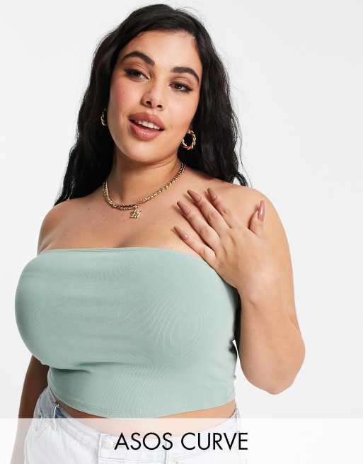 Top corto caqui palabra de honor de algodón orgánico Ultimate de ASOS DESIGN Curve