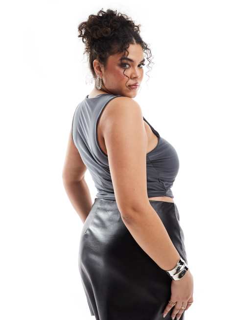 Top corto gris carbón ceñido con diseño de dos capas de ASOS DESIGN Curve