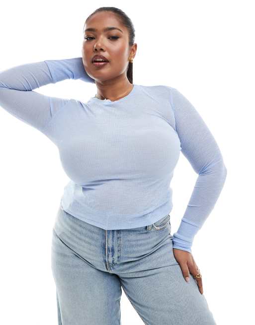 Top interior azul claro con cuello redondo de malla acanalada de ASOS DESIGN ASOS DESIGN Curve