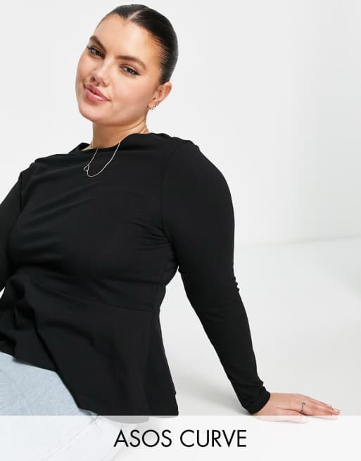 Top negro de manga larga con sobrefalda de ASOS DESIGN Curve