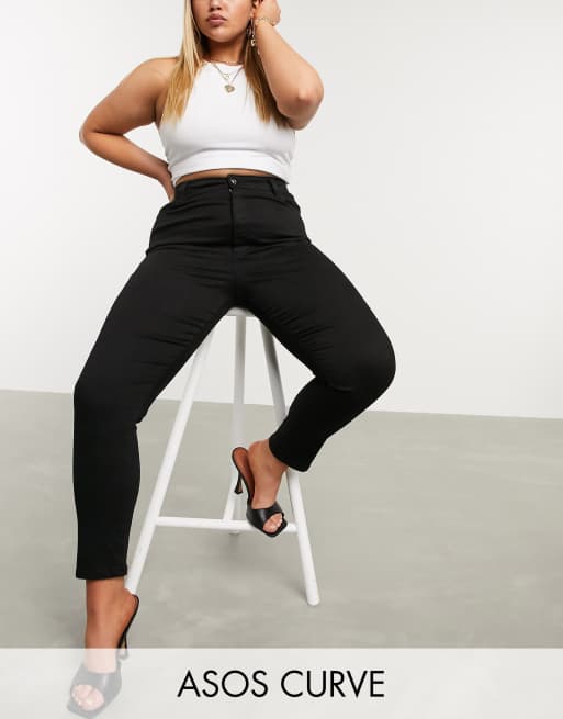 Vaqueros negro limpio de talle alto y corte pitillo con efecto realzador y moldeador de ASOS DESIGN Curve