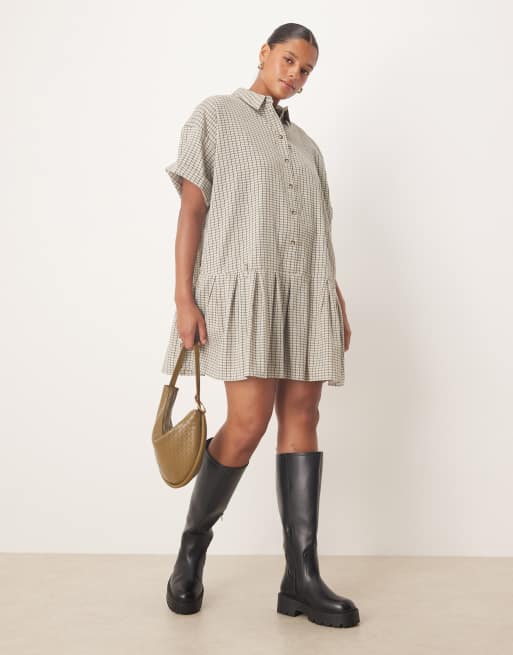 Vestido camisero corto monocromático a cuadros de corte cuadrado con cintura baja de ASOS DESIGN Curve
