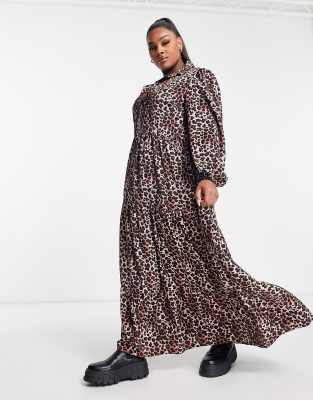 Vestido camisero largo con estampado animal y pinzas de ASOS DESIGN Curve