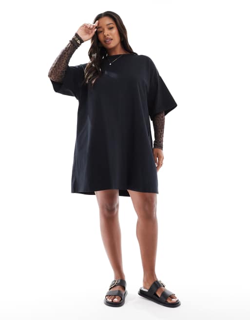 Vestido corto estilo camiseta con mangas con estampado de leopardo de malla de ASOS DESIGN Curve