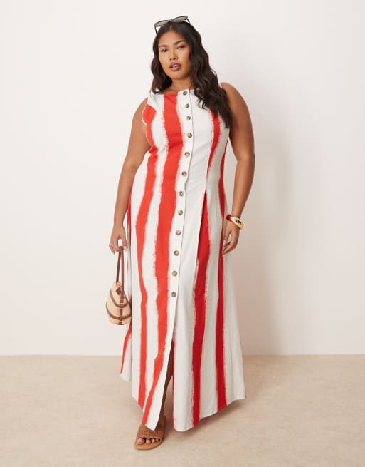 Vestido largo a rayas abotonado estilo chaleco con cuello barco de ASOS DESIGN Curve