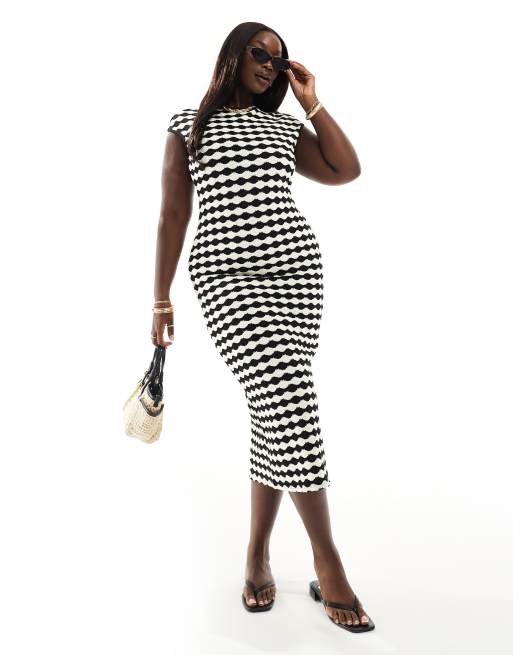 Vestido midi a rayas monocromáticas con mangas de hombro caído de croché de ASOS DESIGN Curve