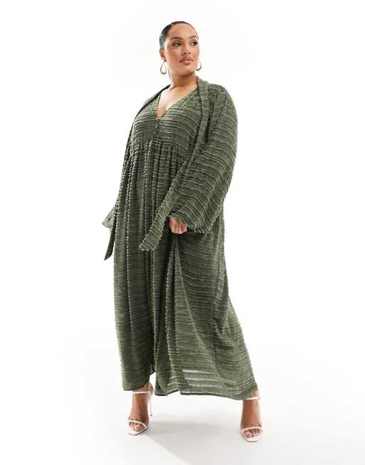 Vestido midi caqui cómodo de punto mullido de ASOS DESIGN Curve
