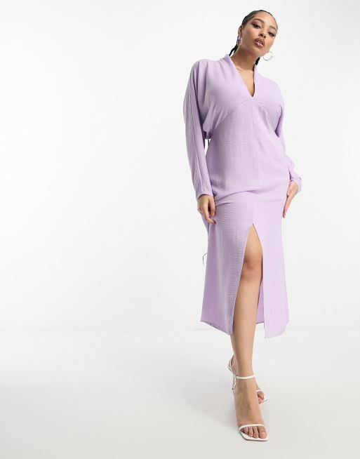 Vestido midi lila escotado con mangas murciélago de ASOS DESIGN Curve