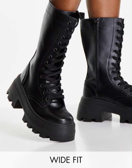 Botas negras con suela gruesa y cordones Aurora de ASOS DESIGN Wide Fit
