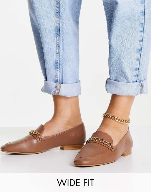 Mocasines tostados con cadena Mingle de ASOS DESIGN Wide Fit