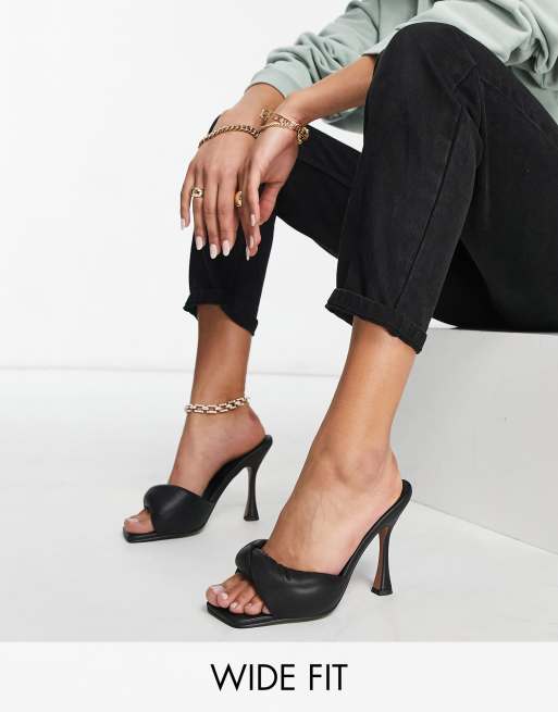 Mules negros de corte ancho con tacón alto y diseño acolchado Niki de ASOS DESIGN