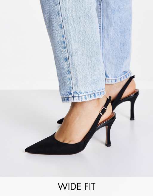 Zapatos negros de tacón de aguja con tira talonera Samber de ASOS DESIGN Wide Fit