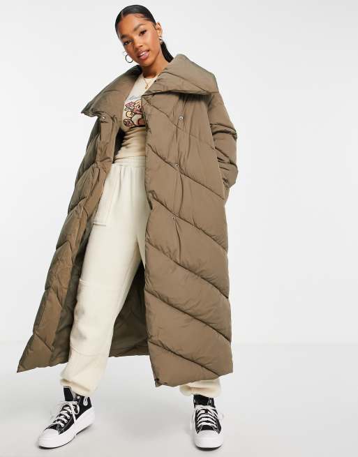 Abrigo de plumas largo marrón acolchado con diseño cascada de ASOS DESIGN - BROWN