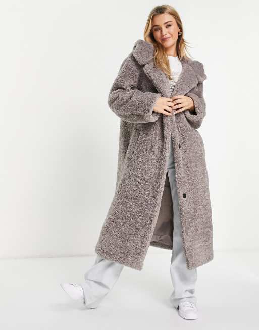 Abrigo gris extragrande con capucha de borreguito de ASOS DESIGN