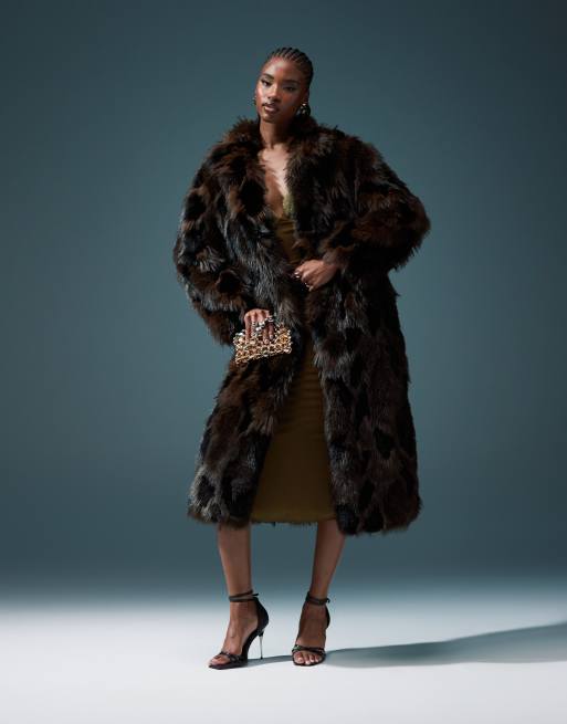 Abrigo largo marrón con diseño de parches de piel sintética de ASOS DESIGN