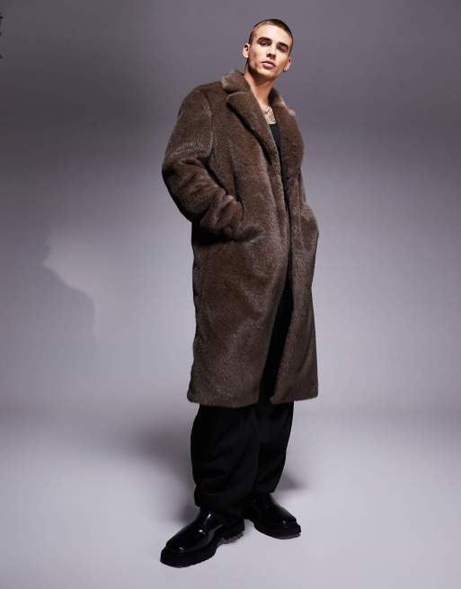 Abrigo marrón de piel sintética de ASOS DESIGN