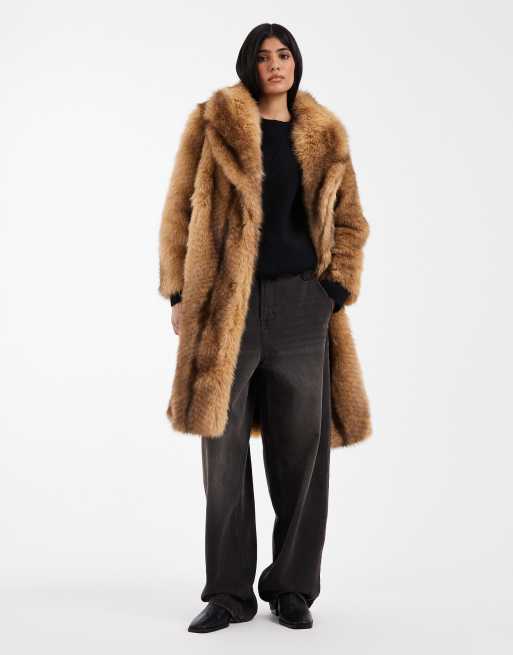 Abrigo midi naranja a rayas de piel sintética de ASOS DESIGN