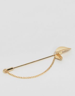 Alfiler de solapa dorado con hojas de ASOS DESIGN