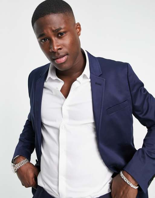 Americana azul marino entallada de algodón de ASOS DESIGN Wedding