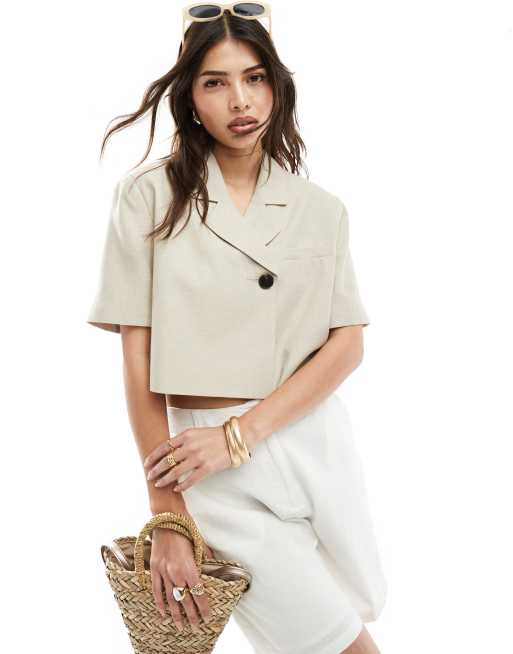 Americana corta beis asimétrica de manga corta de ASOS DESIGN