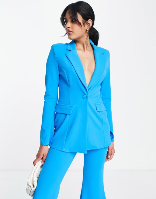 Americana de esmoquin azul eléctrico con abertura en la manga de punto de ASOS DESIGN