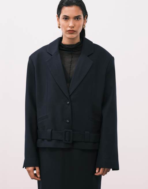 Americana de sastre azul marino ultragrande con cinturón en el bajo de ASOS DESIGN