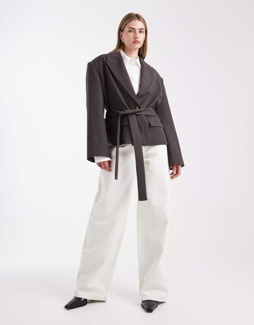 Americana de sastre marrón chocolate de corte cuadrado con cinturón de ASOS DESIGN