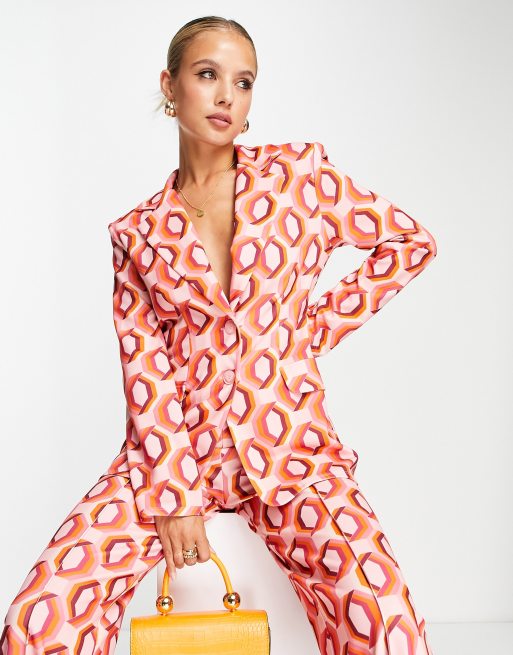 Americana de traje rosa con estampado geométrico de punto de ASOS DESIGN
