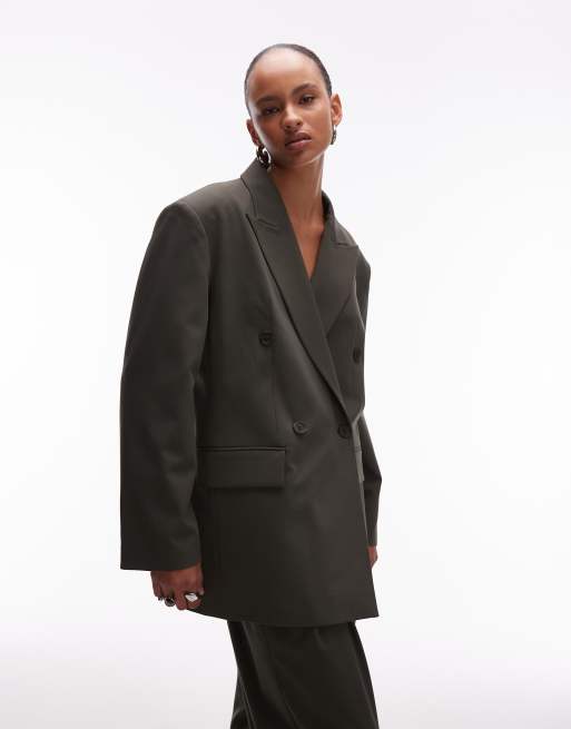 Americana de traje verde oliva con doble botonadura y hombreras de ASOS DESIGN