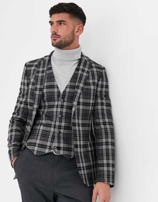 Americana muy ajustada de cuadros grises de ASOS DESIGN