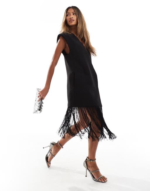 Americana negra sin mangas con flecos de ASOS DESIGN