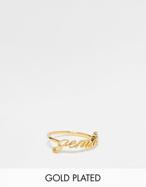 Anillo con diseño del signo zodiacal Géminis chapado en oro de 14 quilates de ASOS DESIGN