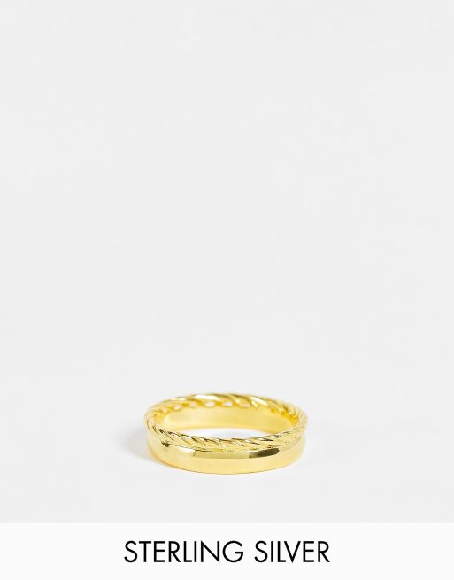 Anillo con doble banda retorcida de plata de ley chapada en oro de ASOS DESIGN