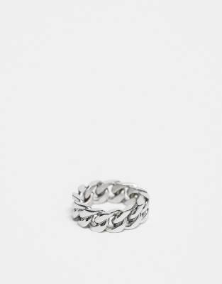 Anillo de banda plateado con diseño de cadena de acero inoxidable resistente al agua de ASOS DESIGN