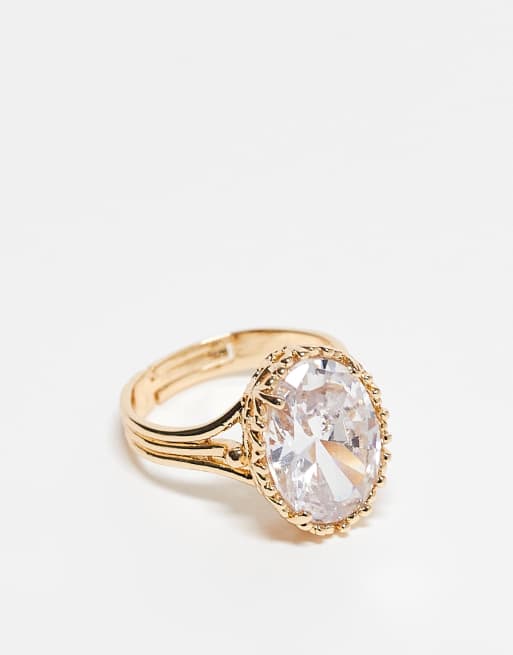 Anillo dorado con detalle de circonita ovalada de ASOS DESIGN