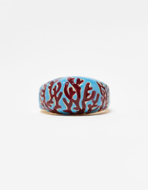 Anillo dorado con diseño esmaltado de coral de edición limitada de ASOS DESIGN