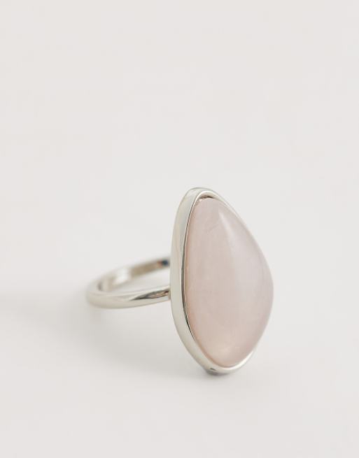 Anillo grande plateado con piedra de cuarzo rosa semipreciosa auténtica de ASOS DESIGN